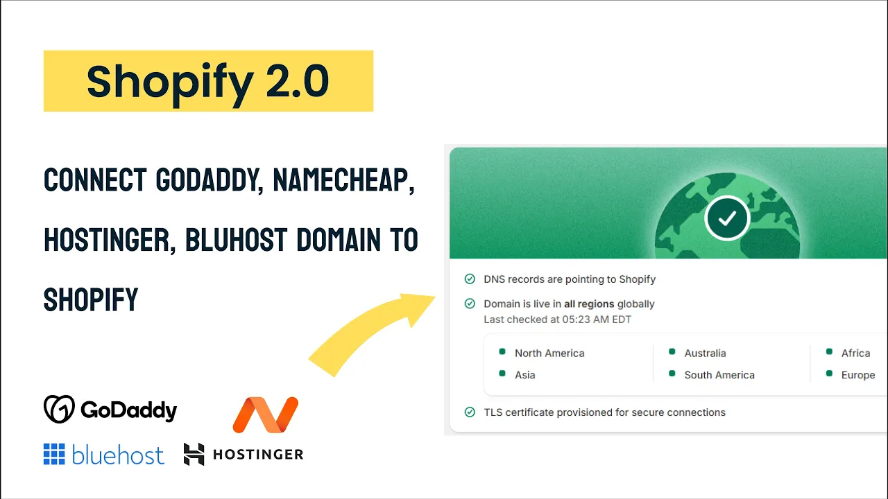 This guide is based on the tutorial by Hey Jak on connecting domains to Shopify using popular providers like GoDaddy, Namecheap, Hostinger, and Bluehost.
